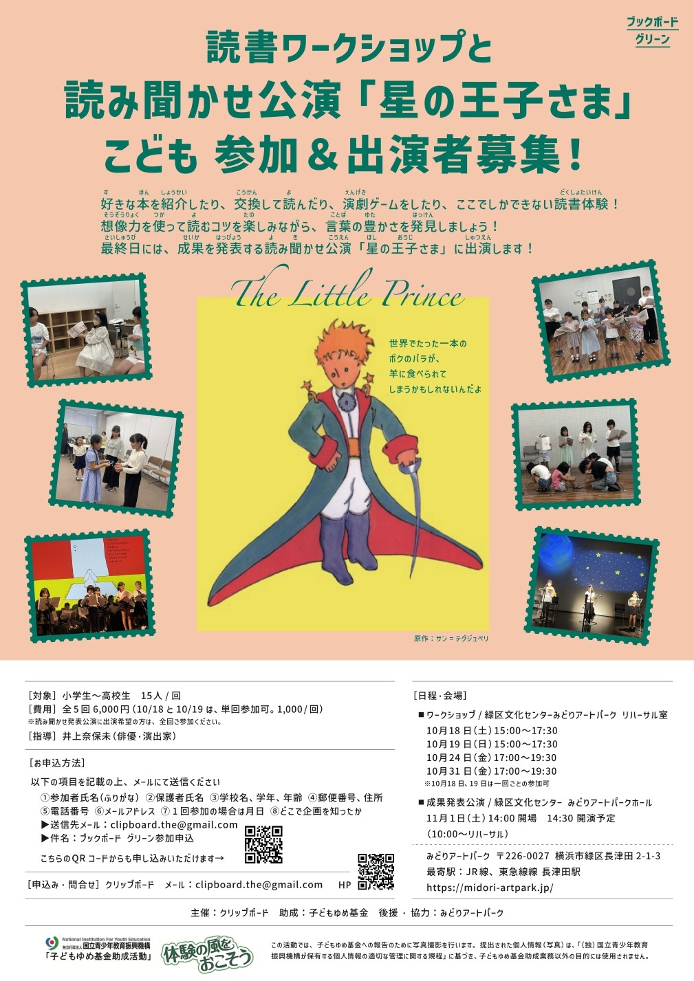 イベント , お知らせ , 募集 読書ワークショップと読み聞かせ公演「星の王子さま」こども参加&出演者募集! 2025.10.11 イベント , お知らせ , 募集 みどりアートパークの舞台に立ってみませんか? 詳しくはこちら Post 【申込みを締め切りました】11月分 みどりアートパークでヤマハCFXを弾こう! 前の記事 「のはらカレッジ2025・アドバンス」受講生募集! 次の記事 information 「のはらカレッジ2025・アドバンス」受講生募集! 2025.10.16 【申込みを締め切りました】11月分 みどりアートパークでヤマハCFXを弾こう! 2025.09.28 イベントカレンダー10月号、アップしました! 2025.09.21