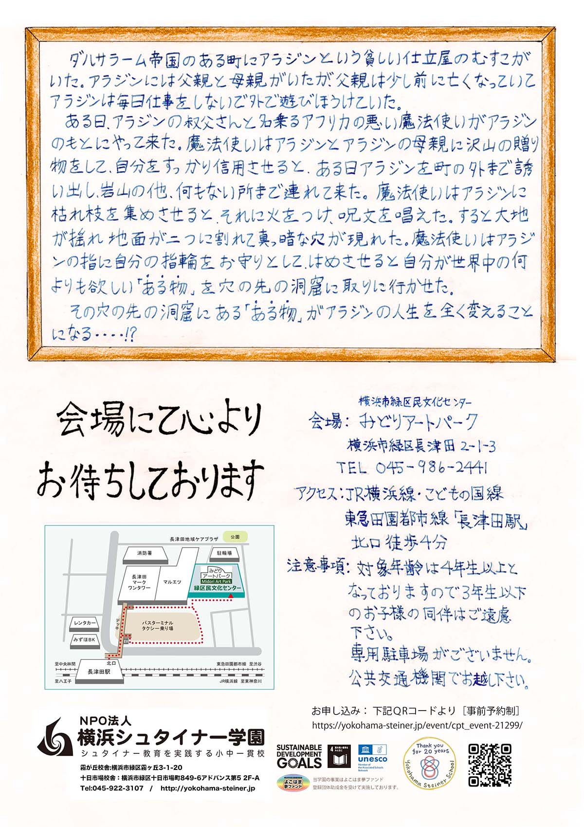 | 主催・お問合せ | NPO法人横浜シュタイナー学園(神田) TEL:045-922-3107 |