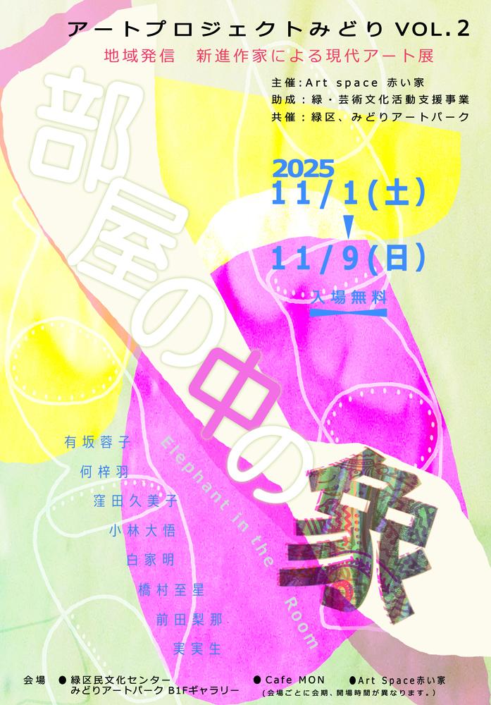 | 主催・お問合せ | Art space 赤い家 E-mail:artprojectmidori@gmail.com 助成 緑・芸術文化活動支援事業 共催 緑区、みどりアートパーク |