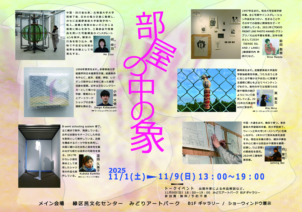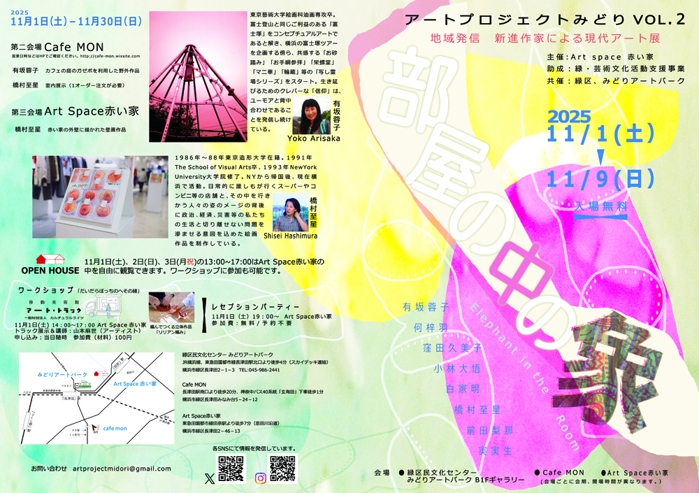 | 主催・お問合せ | Art space 赤い家 E-mail:artprojectmidori@gmail.com 助成 緑・芸術文化活動支援事業 共催 緑区、みどりアートパーク |